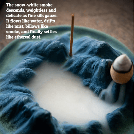 For Visual Meditation (Backflow Cones): Place a backflow incense cone on the highest, perfectly positioned peak. Within moments, a magical, milky river of smoke will appear to defy gravity, cascading downwards through the mountain passes and pooling like a misty lake in the basin below. This mesmerizing “waterfall” effect from our Mountain Backflow Incense Burner creates a powerful and captivating focal point for deep meditation and profound stress relief.