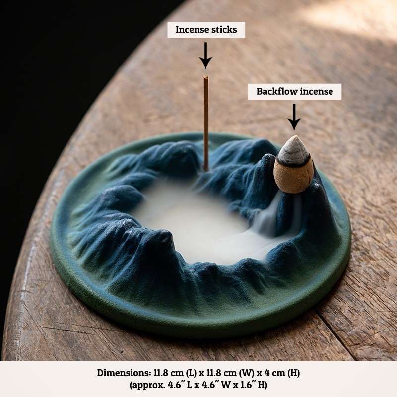 Meticulously crafted from high-quality ceramic, this burner features a textured, matte glaze in serene shades of mountain blue and earthy green. The peaks and valleys are sculpted with an organic, natural feel, creating a miniature landscape that is beautiful to behold even when not in use. This commitment to artistry makes each Backflow Incense Burner Mountain Style not just a tool, but a piece of decor that brings a sense of timeless peace and natural beauty into your home. This is the quality that defines a truly exceptional Mountain Backflow Incense Burner.