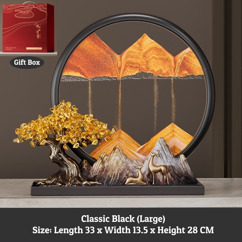 Transform your stagnant energy into a flow of abundance with our mesmerizing Feng Shui Moving Sand Art. Designed to activate “Lai Cai” (the arrival of wealth), this kinetic sculpture combines a golden crystal Money Tree and graceful deer figures with a dynamic sand background. As the golden sands shift to form majestic mountains, they symbolize “backing” and stability in your career. Available in Small and Large sizes, this Feng Shui Moving Sand Art is the perfect desktop companion to relieve stress and manifest prosperity.