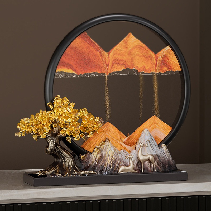 The Fortune Deer: In Chinese, the word for “Deer” (Lu) sounds exactly like the word for “Official Salary/Wealth.” The deer is a symbol of grace, longevity, and high income. The phrase “With Deer, there is Wealth” inspires the design of this Feng Shui Moving Sand Art.