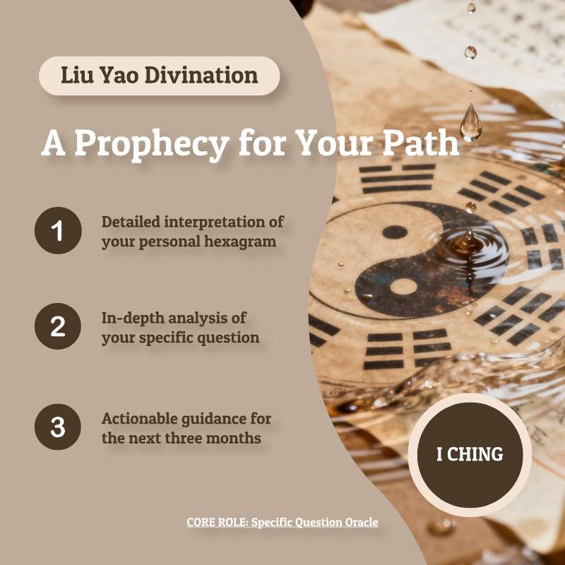 Liu Yao is used to analyze the energetic dynamics of a situation—identifying potential outcomes, obstacles, and opportunities.