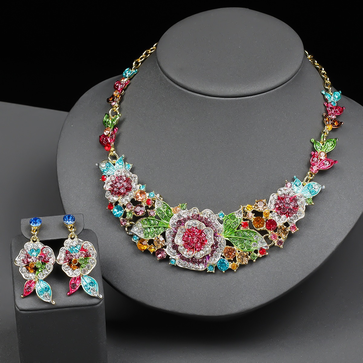 Embrace the timeless beauty of a blooming garden with our Colorful Luxury Crystal Glass Party Jewelry Set. This masterfully crafted ensemble features an intricate rose-inspired design, meticulously handset with colorful crystals and shimmering clear glass accents. Set against a polished silver-tone base, this Luxury Crystal Glass Party Jewelry Set captures the light and the spirit of romance. Whether you are attending a grand wedding or a formal gala, this statement piece provides an air of regal sophistication and artistic flair.