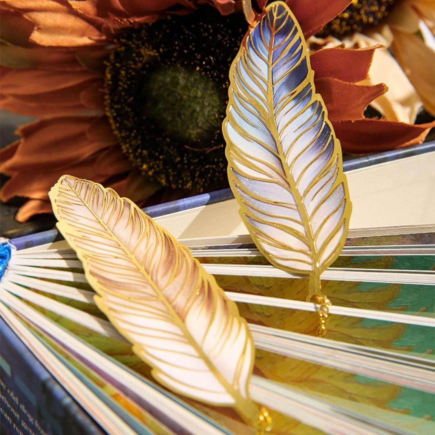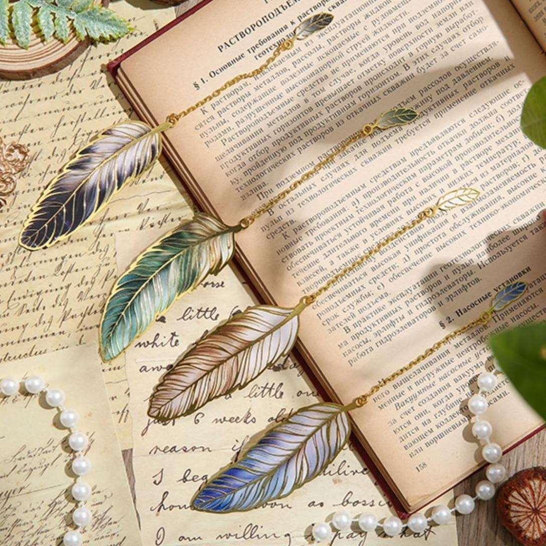 Our feather bookmarks are inspired by the elegance of a bygone era. Each piece is crafted from a high-quality, lightweight metal alloy, ensuring it is thin enough to rest gently between pages without damaging the spine, yet durable enough for a lifetime of use.