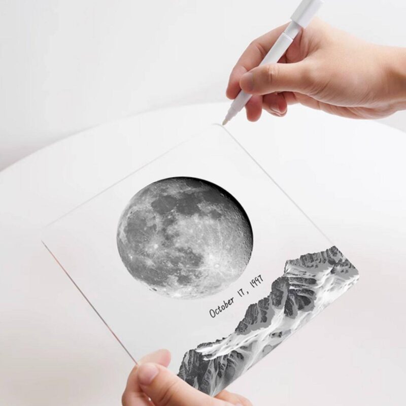 What truly sets this Personalized Moon Phase Memorial Frame apart is the level of personalization. Beyond providing the Name and Date, you can include a heart-to-heart Quote or a “Random Luck in the Universe” message. Each frame comes with a specialized erasable marker pen, allowing you to write temporary notes, daily affirmations, or secret messages directly onto the acrylic surface. This interactive element makes the Personalized Moon Phase Memorial Frame a living part of your daily routine, evolving as your story continues to unfold.