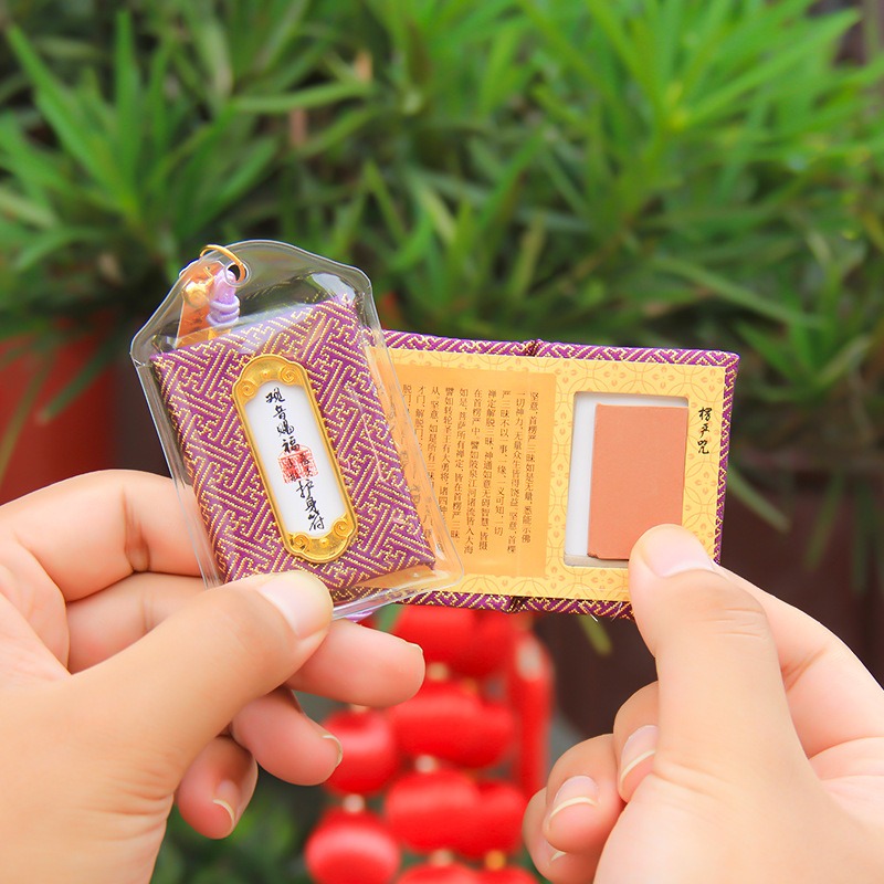 The Purple Talismanic Fragrance Sachet Amulet is made from premium silk with elegant “noble” patterns. It is enclosed in a sturdy, transparent case that keeps it dust-free. Accompanied by a tinkling bell and a wooden charm, the Talismanic Fragrance Sachet Amulet is as beautiful as it is spiritually significant. Please be aware that this item is sold individually (no gift box included). Let this be your personal guardian of peace.