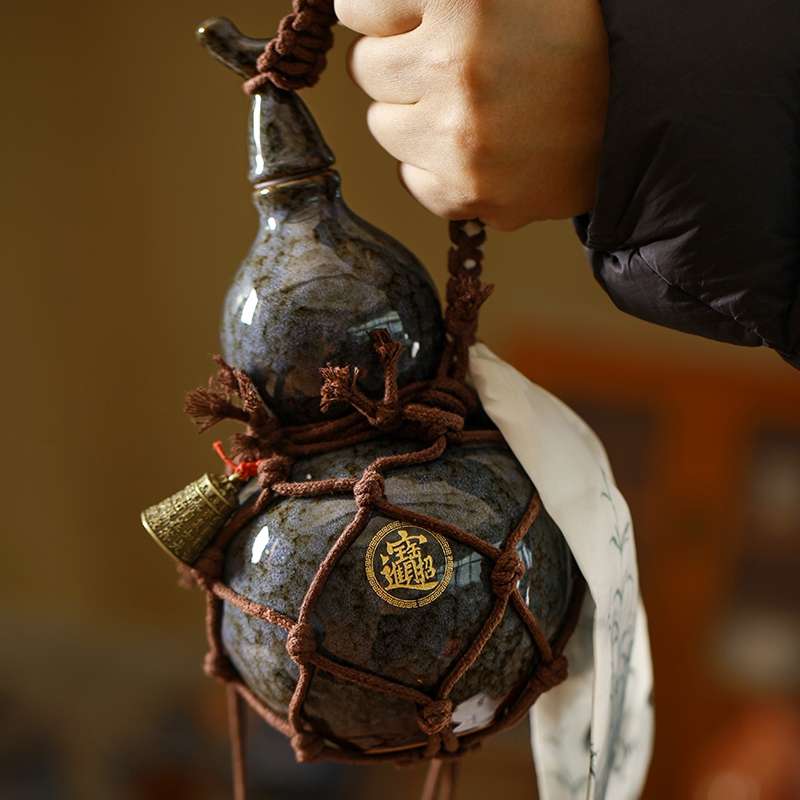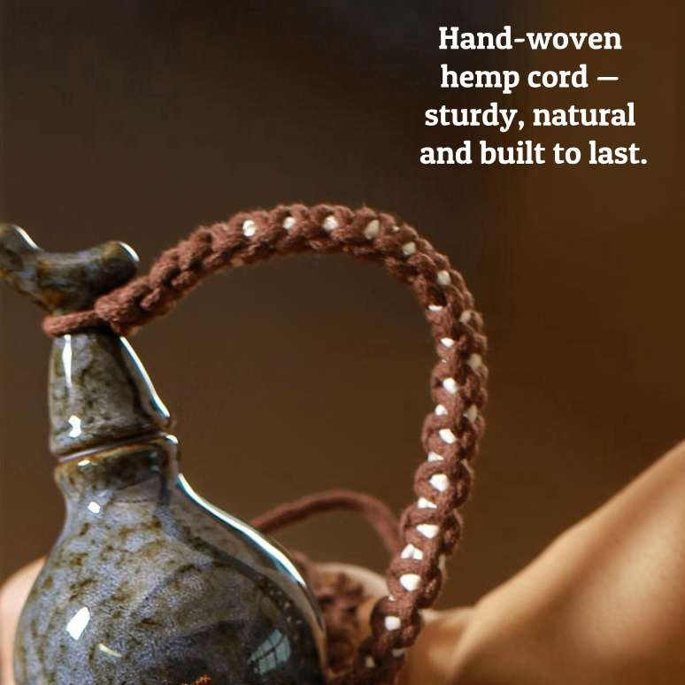 • Includes: 1x Ceramic Gourd Flask, 1x Hand-tied Rope Carrier with decorative bell and charm.